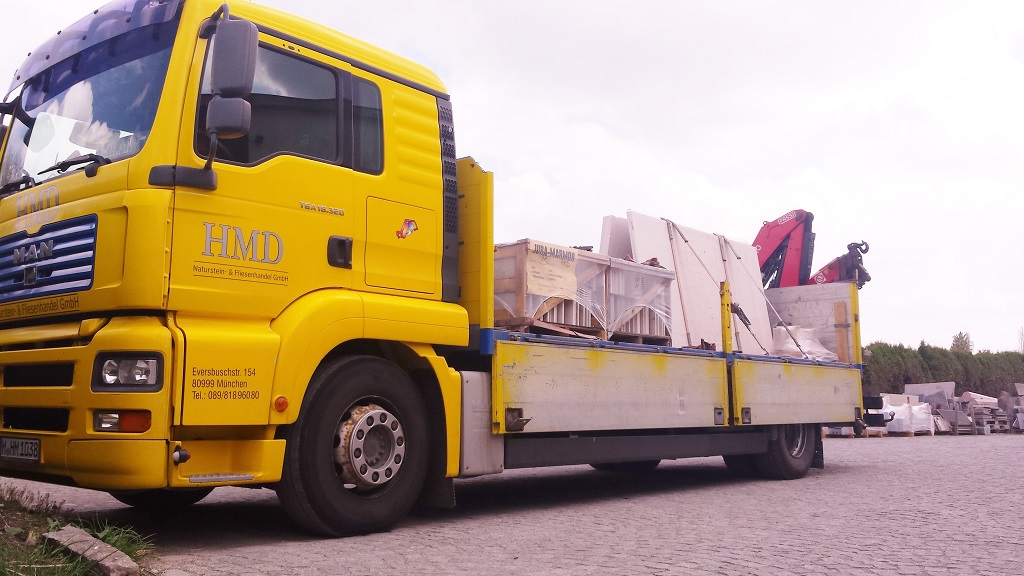 Als Großhandel beliefern wir das steinbe- und verarbeitende Gewerbe im südbayerischen Raum mit eigenem Kran-LKW ab unserem Lager im Münchner Nordwesten.
